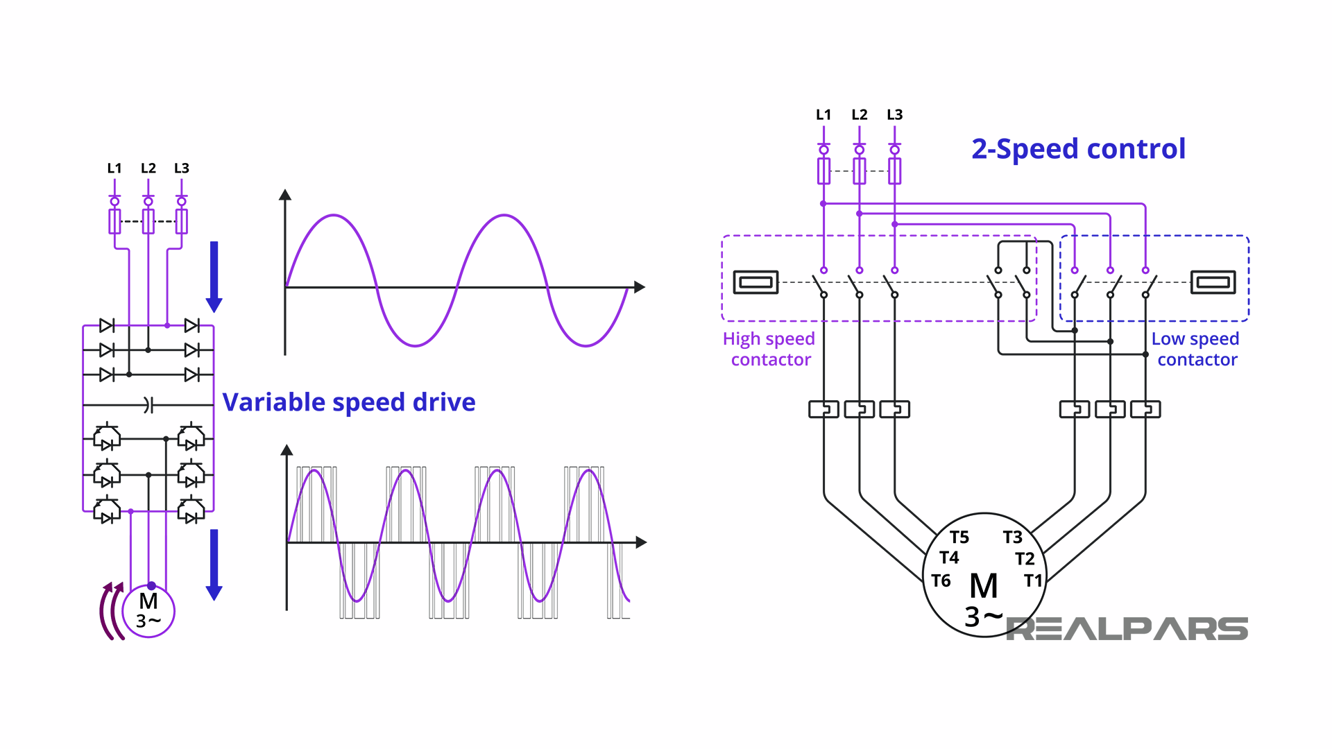 最后一种电机启动方法是多速。多速电机控制器使用固态或变换装置,以允许以不同的速度控制电机。这些方法中的两种,变速驱动和2速控制将在后面描述。