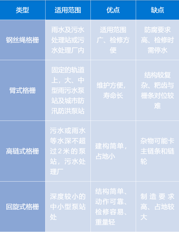 用于污水或雨水等水深不超过2米的泵站,以及污水处理厂,以去除污水中粗大漂浮物,对后续工序起保护作用和减轻负荷作用。