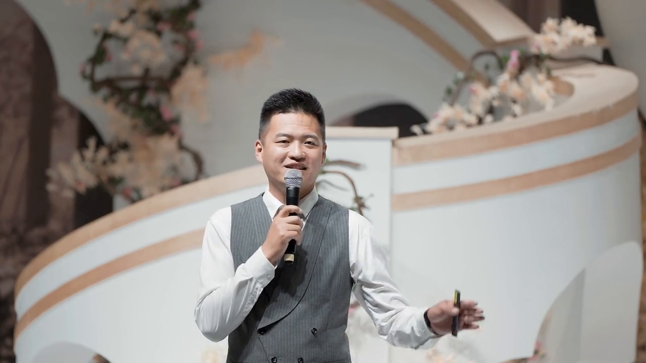 第一眼跟我说,他说哥,从我进入这个行业之后身边就有着非常多的同行帮助着我,鼓励着我,才让我能够在这个行业当中有一席之地。天意很懂得感恩,所以今天婚礼现场的每一个角落都有着婚庆同行忙碌的身影,当然也包括此时站在台上的我。