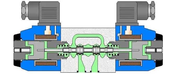 电磁换向阀是利用电磁铁吸力推动阀芯来改变阀的工作位置。它可以改变控制液流的方向,从而改变液动换向阀的位置。