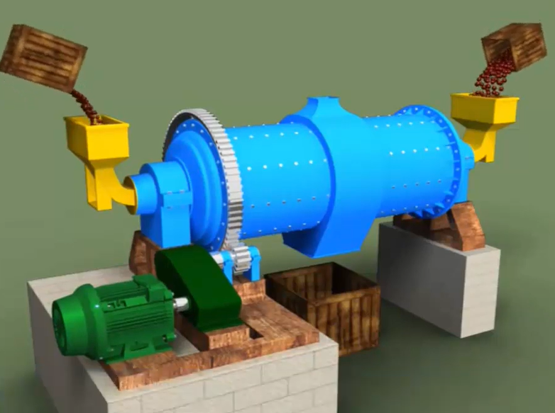 球磨过程球磨机主要是由圆柱形筒体,中空轴,主轴承,进出料空心轴,电动机,传动大小齿轮等部件组成。