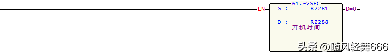 R4128为系统默认秒存储的缓存器,假设现在是9:10':15'',那么R4128中存储的数字就是15,同理R4129中存储的数字为10,R4130存储的就是9,(当然程序内部是以24小时计算)我们将系统某一时刻秒数计算完后得到一个汇总的数据,储存在缓存器R1220中,紧接着在编写一步程序如下;