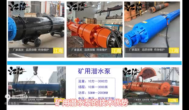 江海泵业生产各种规格型号的全系列矿用潜水泵,流量扬程范围广,流量从10立方米/时到3000立方米/时,扬程从10米到3000米,可根据具体工矿环境出具技术方案,选用的矿用潜水泵产品。另外可提供电缆、扬水管、启动柜等全部配套服务。欢迎咨询选购!