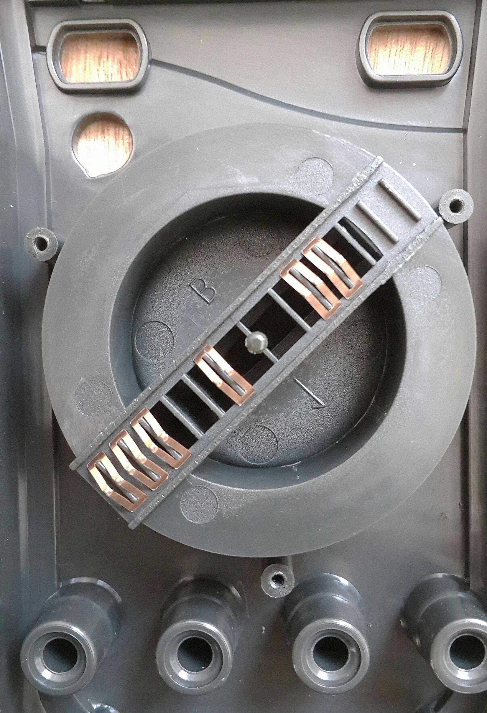 档位转盘的背面,可以看到接触弹片。