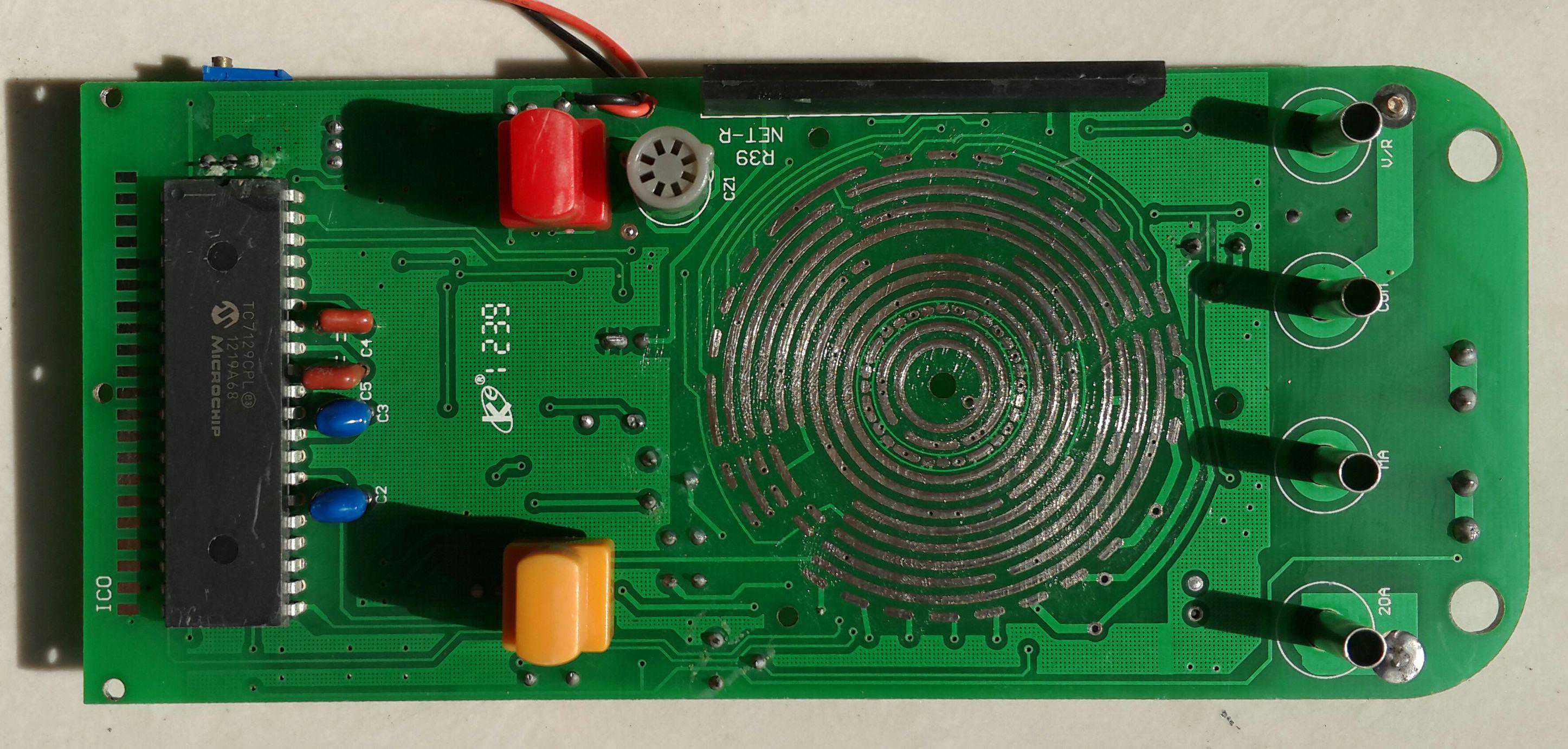 现在看到的是核心的主控芯片,负责A/D转换(摸拟转数字的一种逻辑运算)和液晶显示的,可以说是万用表的大脑。