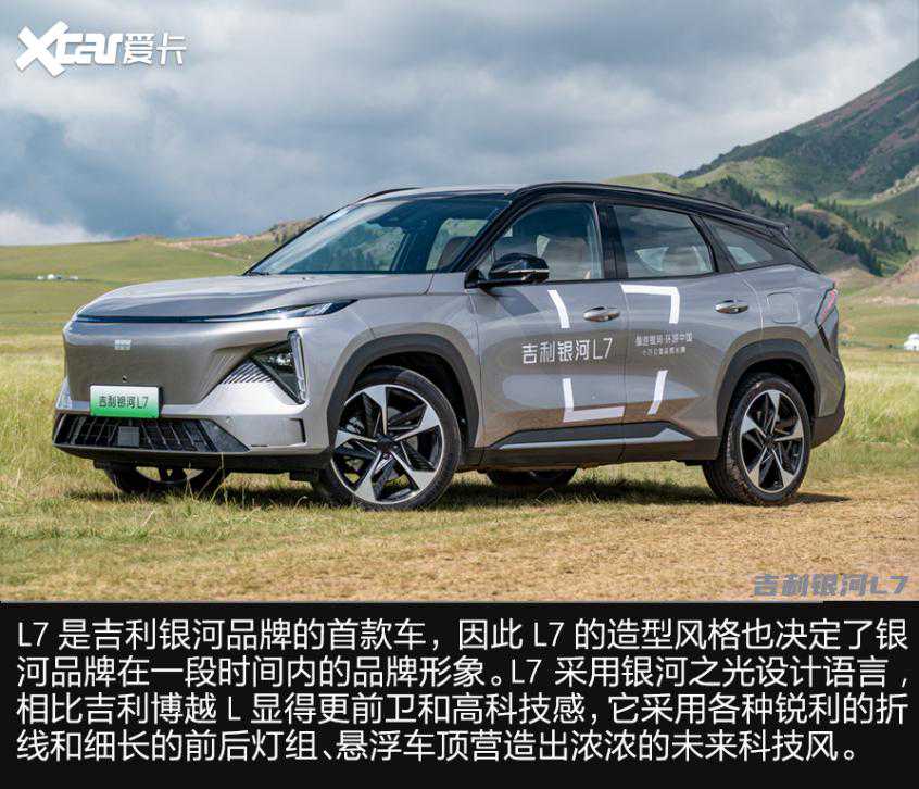 我们再来回顾吉利银河L7的设计和科技装备。作为吉利全新中高端新能源品牌,银河将推出纯电平台E系列和智能电混L系列,轴距覆盖A0级到B级,而作为银河品牌的首款电混量产车型,L7的造型设计昭示着银河品牌产品的品牌形象,而各项科技装备的应用,也决定了银河品牌的市场定位。