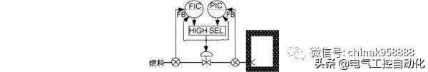超驰控制系统(OverrideControl)是自动选择多个调节器的输出信号,进而对过程进行控制的方式。如图所示,在确保燃烧器燃料压力最低的同时,在进行流量控制的回路中,自动选择压力调节器和流量调节器中控制输出较大的一个,对调节阀进行控制。该控制回路也称为自动选择(AUTO-selector)控制。