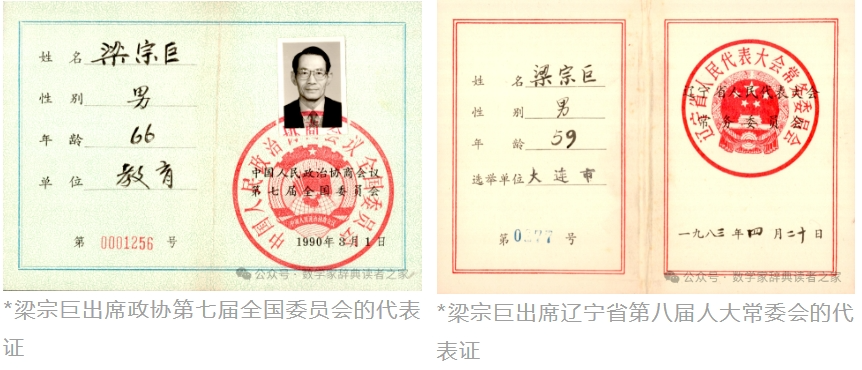梁宗巨从不怀挟门户之见,故能集百家之长为己所用,也从不盲从权威,每有疑问必然深究到底。他常以亲身经历说明教学相长的道理,在求教者面前他一直是一位温文尔雅、有求必应的导师,帮助过许多数学史工作者,一些普通群众也曾受惠于他的教导,“农民数学家”梁培基就是在他的推荐下发表了有关双重幻方的论文。梁宗巨花费数天时间来验证梁培基的计算结果,还帮助梁培基改写了论文,而发表时却拒绝加上自己的名字。梁宗巨还是中国人民政治协商会议第七届、第八届全国委员会委员,辽宁省第八届人大常委,作为教育界代表,他在繁忙的教学科研工作之外,积极参政议政,为祖国现代化建设出谋划策。他曾为教育经费不足进行呼吁,也曾为师范教育改革提出建议。梁宗巨殷切期盼着祖国繁荣富强,并为此挥洒着自己的热情和汗水。