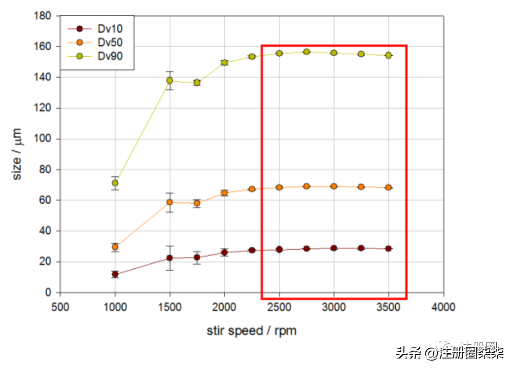 示例:对某样品进行泵速滴定,>2500rpm处于平台期,因此可选择2500rpm作为该品种的搅拌速度。