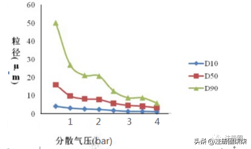 选择最佳的分散气压,保证颗粒既能避免发生团聚,又避免颗粒被高压破碎。通过压力滴定,改变分散气压做一系列重复实验,可以判定合适的分散气压。