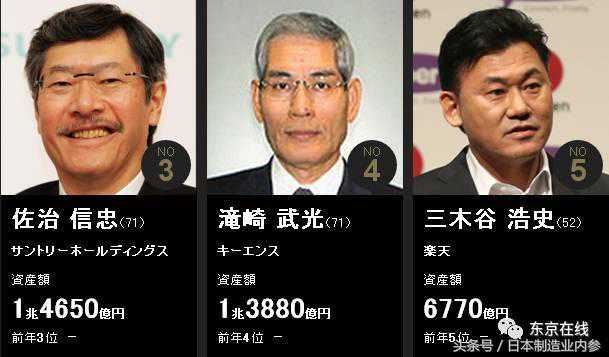 在日媒公布的入围世界福布斯富豪榜的日本人前十名中,软银、乐天、三得利等多家知名巨头日企总裁上榜,当然还有基恩士:)