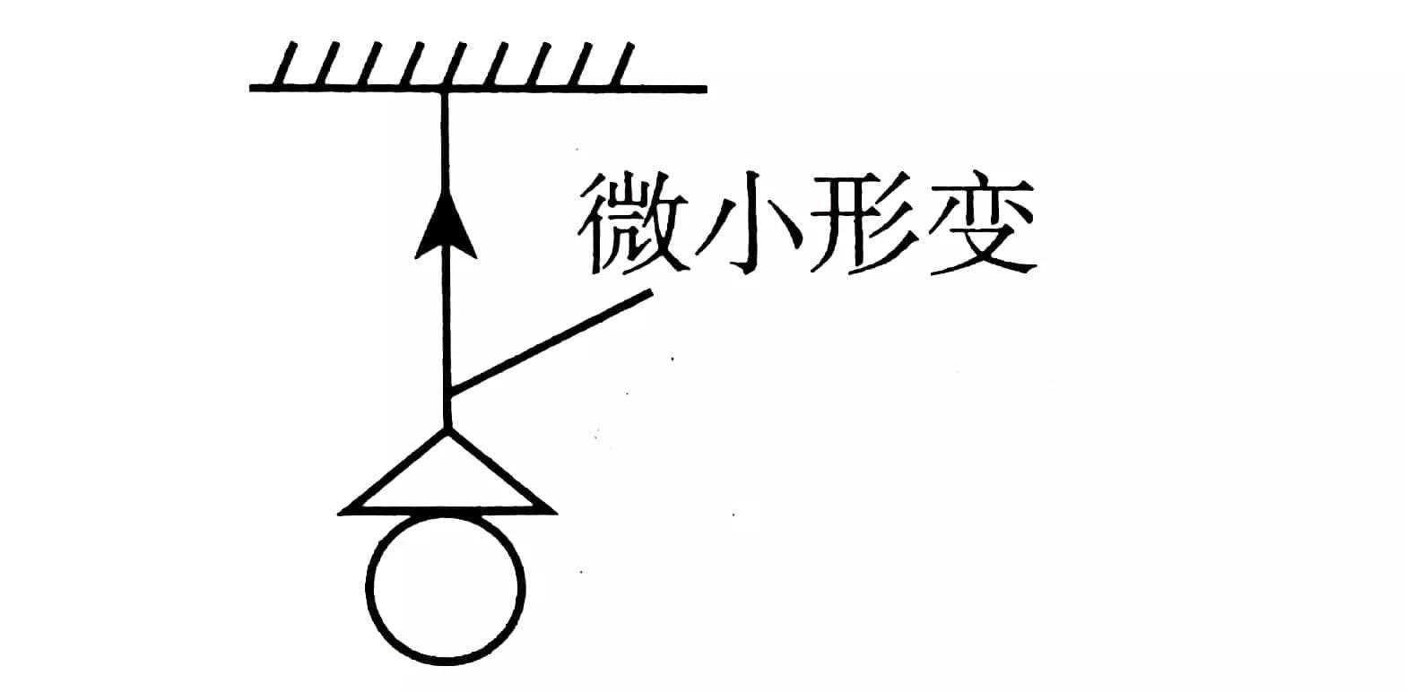 挂在电线下面的电灯,由于它受重力作用而拉紧电线,使电灯和电线都发生微小的形变。电线由于发生形变而对电灯产生向上的弹力,这就是电线对电灯的拉力,同时电灯也由于发生