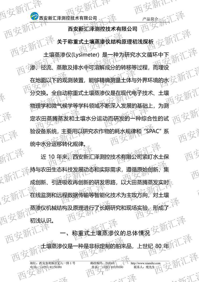 近10年来,西安新汇泽测控技术有限公司紧盯水土保持与农田生态科技发展动态和实际需求,遵循原始创新、集成创新、引进吸收再创新的研发思路,以大田蒸腾蒸发实时在线监测和远程数据传输等智能化技术为主攻方向,对土壤蒸渗仪机械结构及原理进行了长期研究和现场实验,形成了初浅认识。