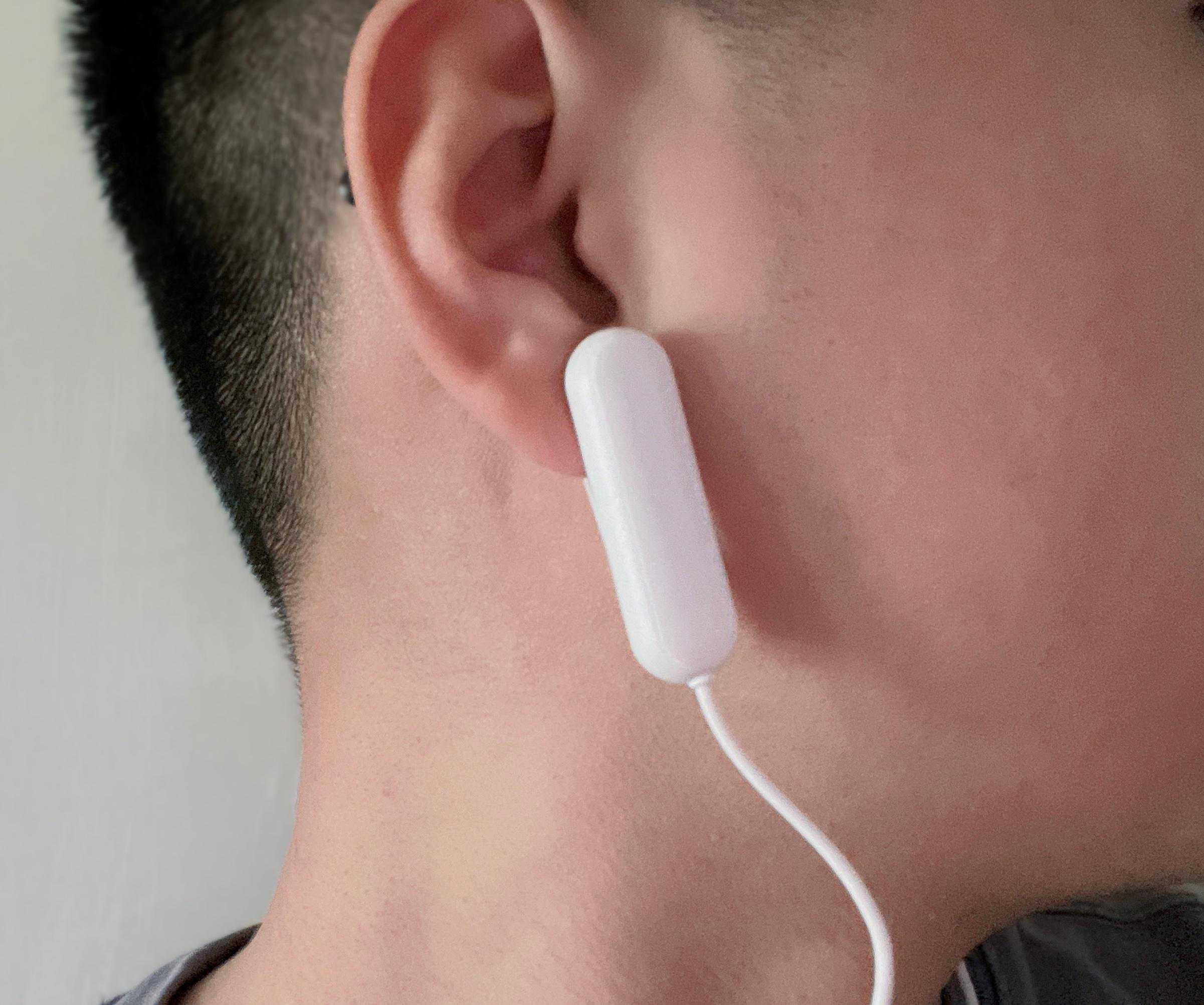 它的使用方法也很简单,就是将耳夹电击线插入,然后用垫圈垫住耳夹,并倒入导电液,夹在耳朵上即可开机即可。有点类似听音乐的感觉,但它是夹在耳朵耳垂处的。当你夹住耳垂之后,再开机调节到适合的档位,这时候你会有一种轻微的电击感。它的原理其实是用低频的脉冲来进行对大脑的刺激。