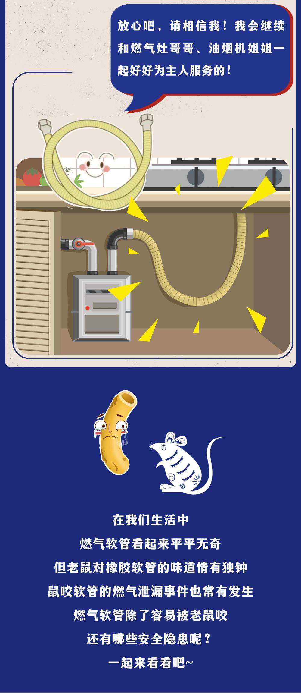 1月7日,浙江杭州久睦苑2幢2单元1002室着火燃爆,抢修人员踏勘发现,连接灶具的橡胶管有破口,疑似被老鼠咬破,初步判断橡胶管破损是造成燃气泄漏的主要原因。