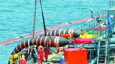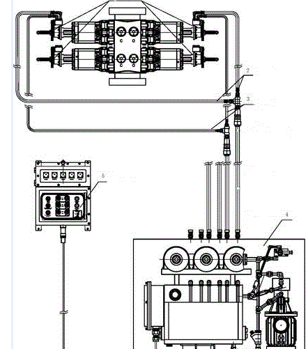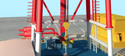 装上足够长度的软管束,其中包含所需数量的供应线和回油线,以适应钻井平台的最大操作水深。在防喷器组上,将相应的软管连接到相应的功能。装有滑移支架的地面防喷器控制动力单元和控制多路阀。