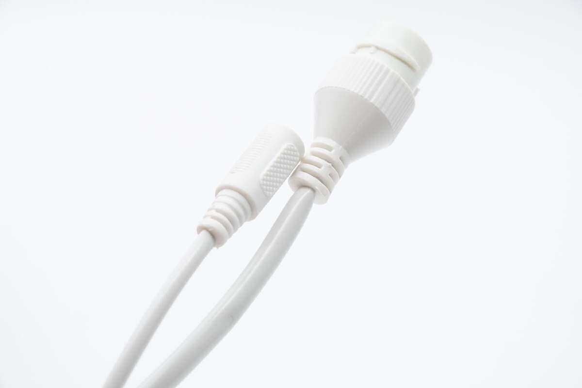 网络摄像机自带的连接线进行了二合一设计,分线分别为电源连接线和网络连接线。
