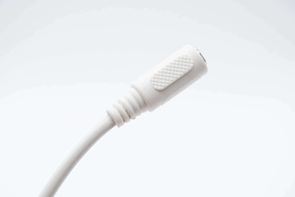 端部特写,内部设有金属柱,支持DC12V电源供电。
