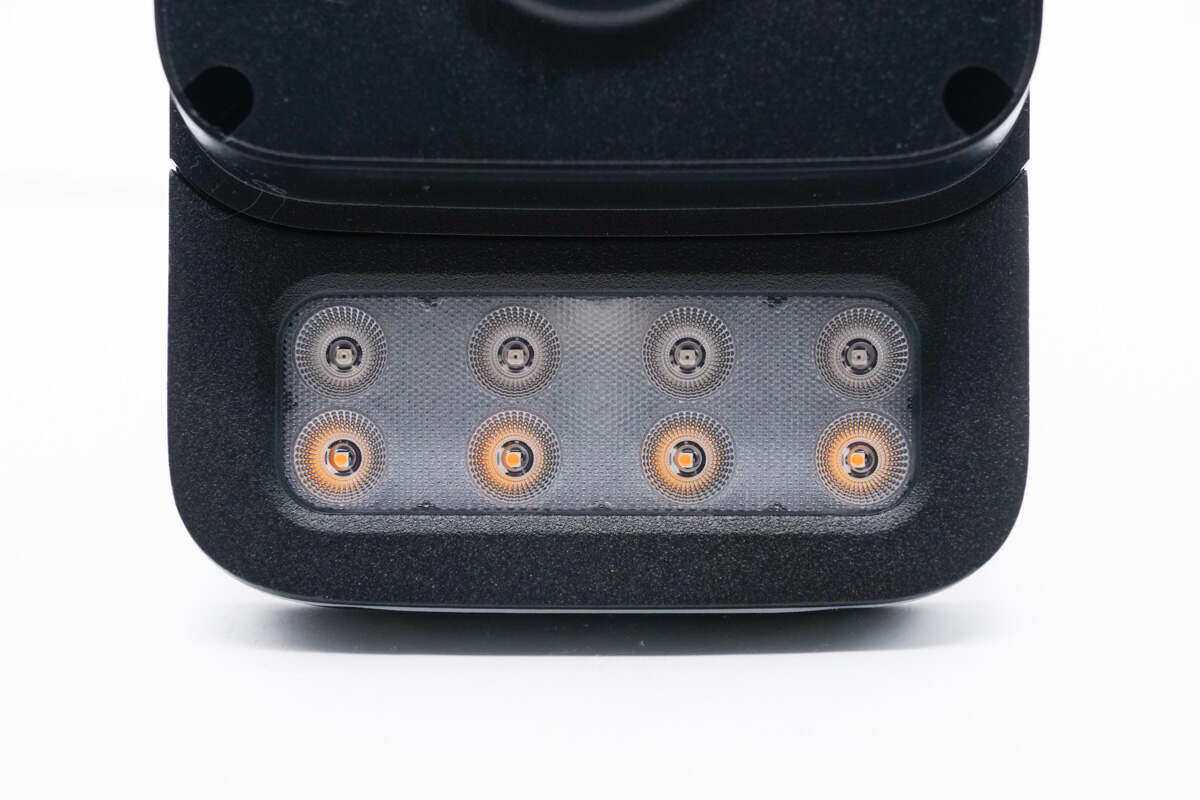 下方延展部分设有4颗大功率红外灯(上排)和4颗大功率暖光灯,为产品夜间场景下的红外/智能/全彩模式提供支持。