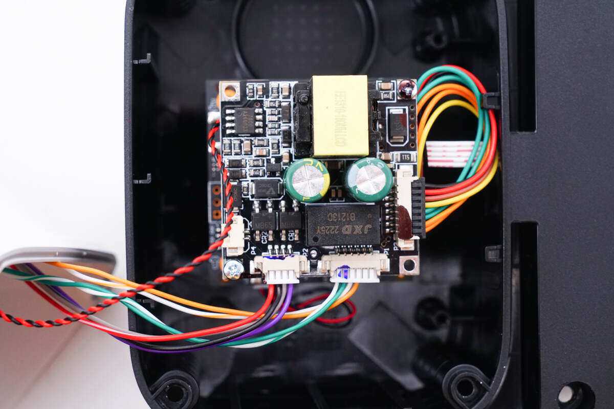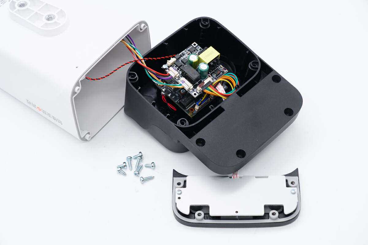 摄像机内部PCBA模块一览,采用螺丝进行固定。小板间导线主要以插拔式设计,方便组装和维护。