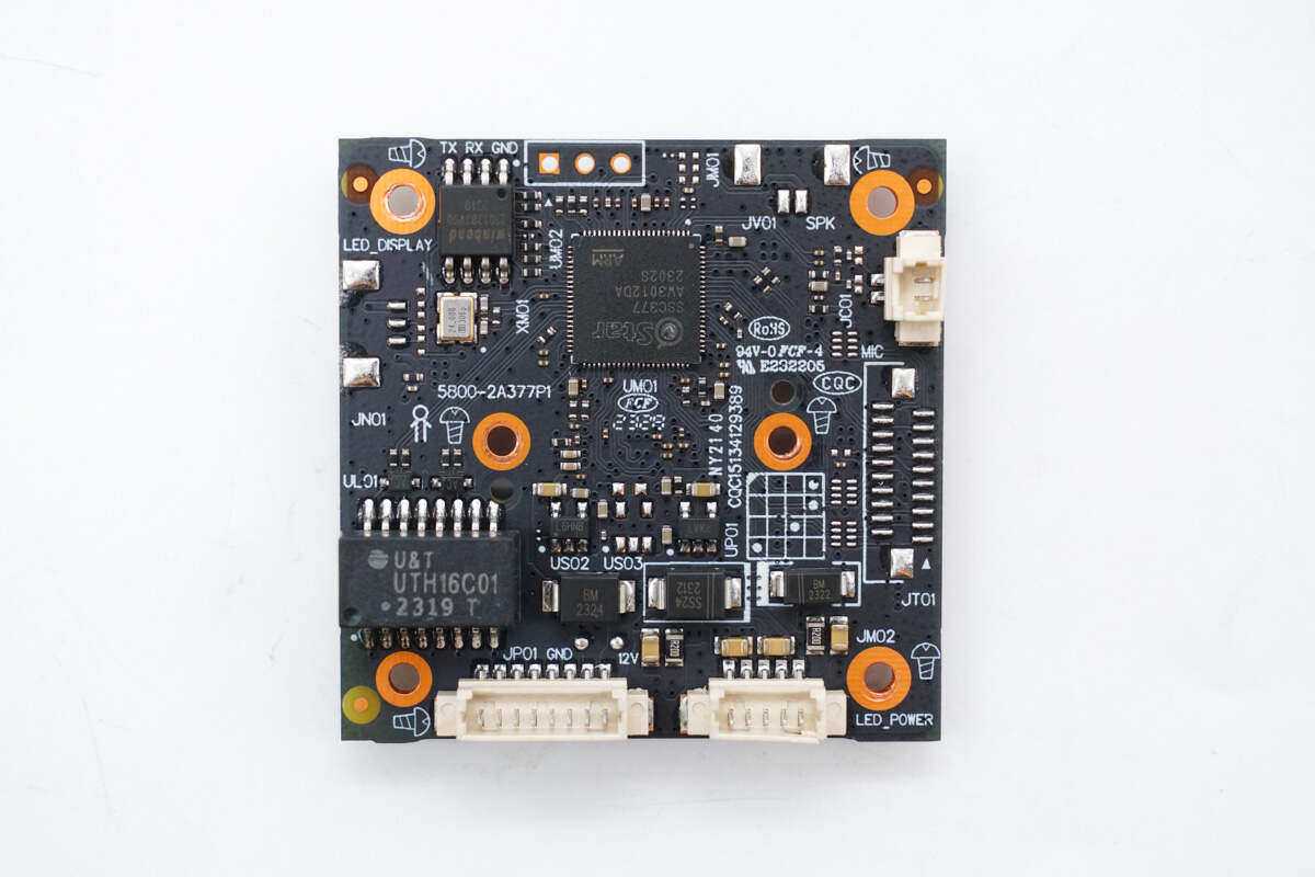 摄像头小板一览,背面焊接主控芯片,存储器,网络变压器和连接器。