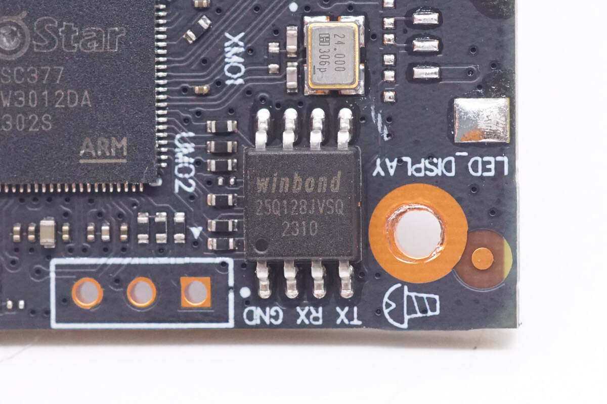 存储器来自华邦,型号W25Q128JVSQ,容量为16MB。