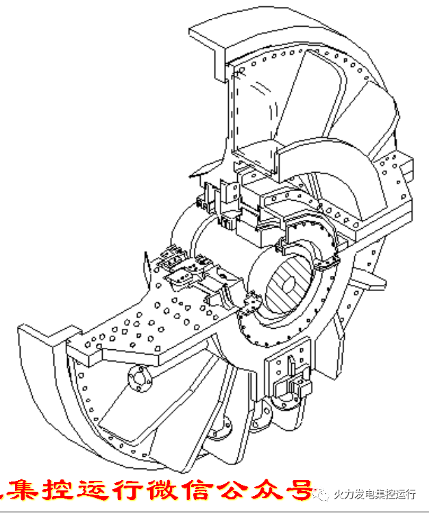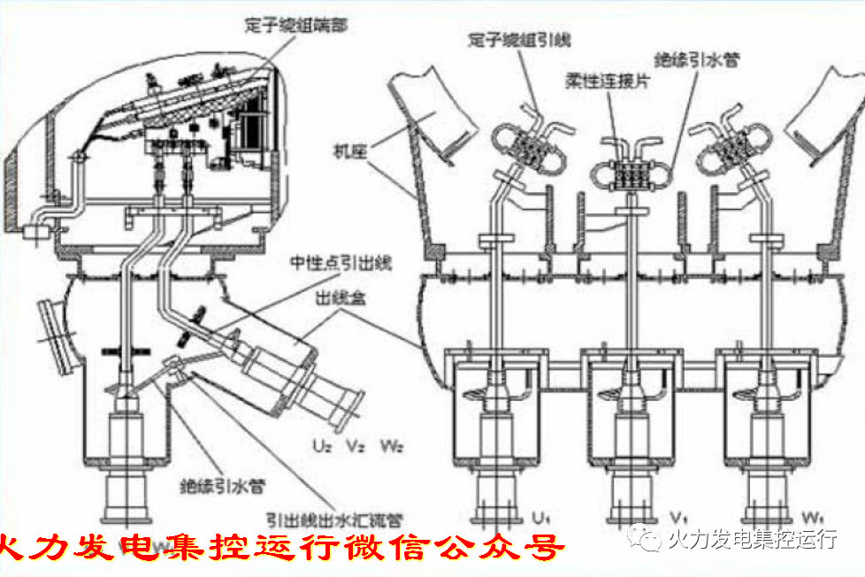 3.定子线圈水内冷:空心导体与实心导体组合而成,定子线圈水内冷,水路连接为并联单流水路,水电接头
