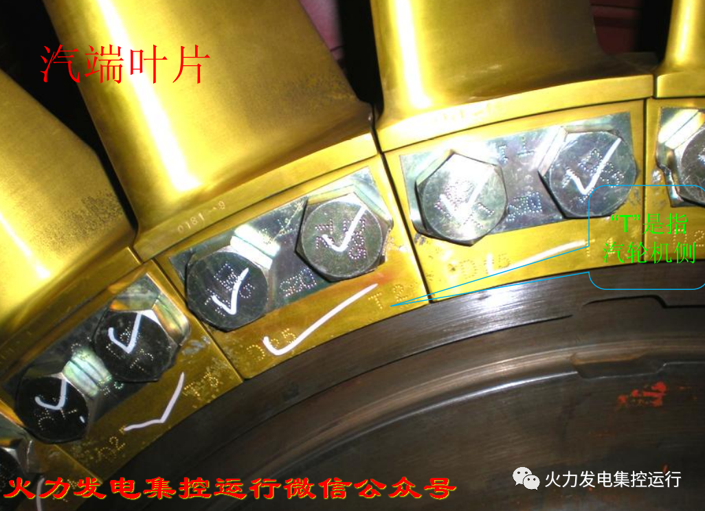 转子扇叶安装方向确认•当转子顺时针旋转(汽端向电端看)时,扇叶的安装方向如下图,进风口是扇叶的厚边,出风口是薄边。
