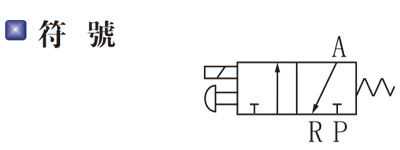 下例中,二位三通电磁阀有两个工作位置和三个通气接口,三个接口分别为进气口(P),工作出气口(A),还有一个放气口(R)。当电磁阀得电励磁时,P和A通;失电回到常位态时,R和A通。