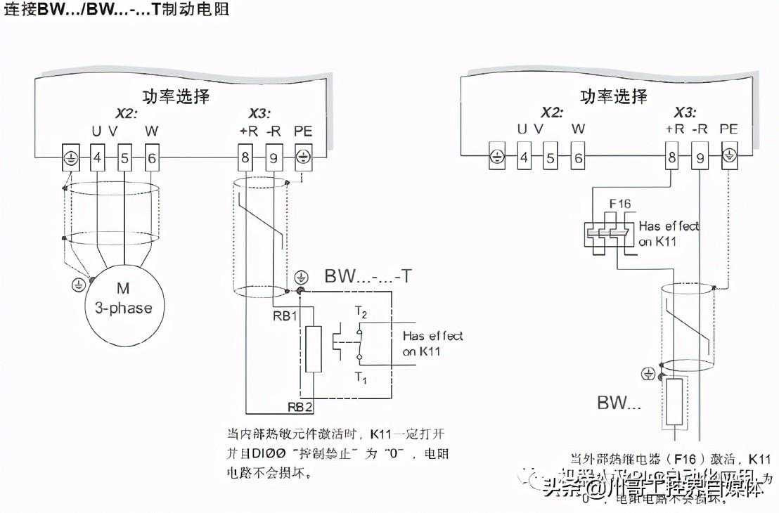 通过双金属继电器来保护制动电阻(除BW90-P52B之外)根据制动电阻的技术指标来调节触发电流.