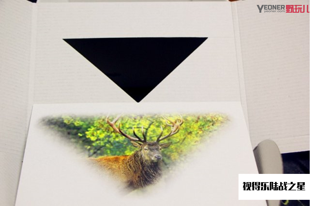 第一个亮点:盒子可以当相框使用,正面设计了三角型的孔,中间插入了可更换的卡片。