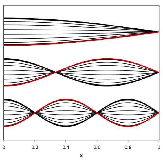 对于柱状的管道,一端堵住,谐振的时候里面声波压强的微小变化是这个样子的。