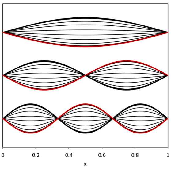 两端开放的管道,谐振的时候里面声波压强的微小变化是这个样子的。