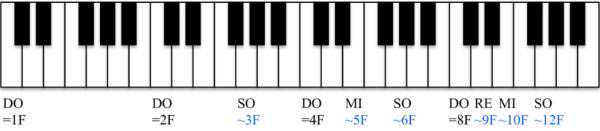 “这个我知道,”我抢答道:“这种三倍的频率关系在音乐上对应十二度音程,比如把1F唱成‘多’,2F对应于高音‘多’,3F是继续往上走,对应于高音‘嗦’。与‘多’之间是十二度音程关系。”