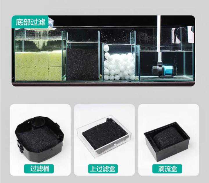 底滤鱼缸放在过滤槽过滤棉的下方。