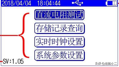 单通道直流电阻测试仪“主菜单”