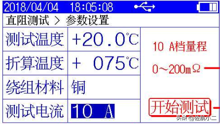 选择“直流电阻测试仪”菜单进入直流电阻参数设置屏,如下图。