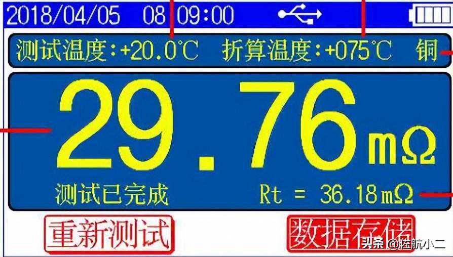 “直阻测试结果”屏如下图: