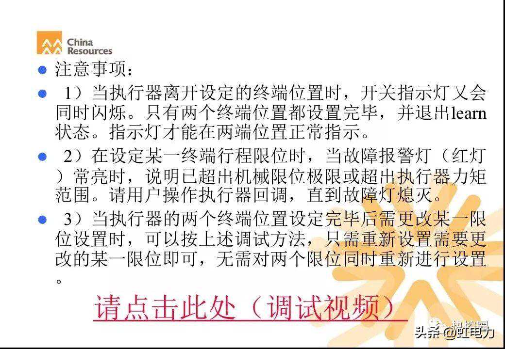 2)在设定某一终端行程限位时,当故障报警灯(红灯)常亮时,说明已超出机械限位极限或超出执行器力矩范围。请用户操作执行器回调,直到故障灯熄灭。