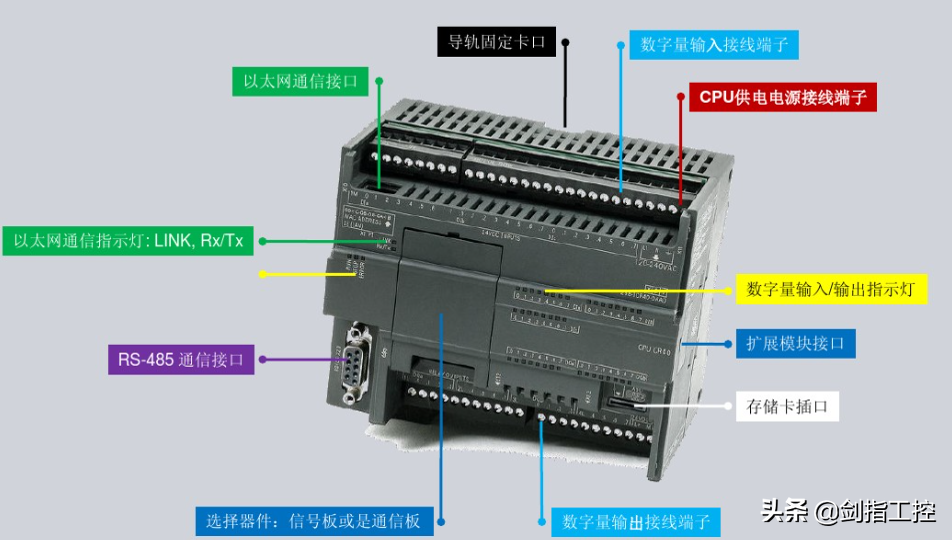 •PLC的输入输出接口主要用于将按钮,开关,各类传感器传入输入接口,输出接口是将CPU向外输出的信号转换成可以驱动外部执行元件,如指示灯,继电器等。