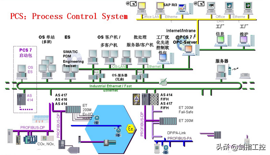 DCS系统介绍—现场案例在该现场使用了西门子PCS7系统,实现了硬件冗余,即电源冗余,CPU冗余,网络冗余,I/O冗余,且使用了故障安全模块,提高了系统的可靠性,达到了SIL2等级。