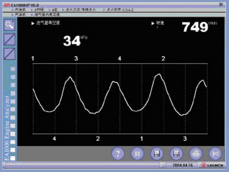 用示波器观测负压波形,可以分析、判断气缸的密封性,以EA1000型发动机综合性能分析仪为例,方法如下: