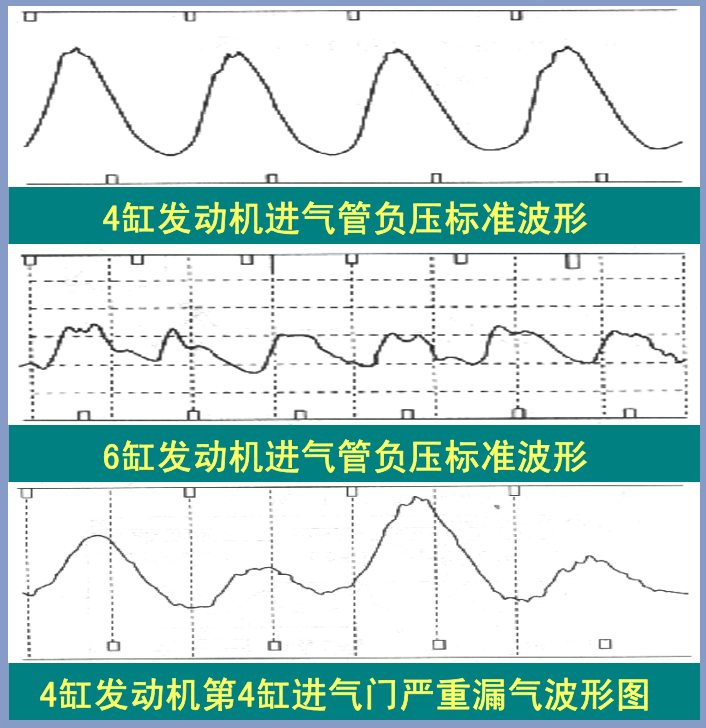 怠速时,指针指示值逐渐下降至零,表示排气消声器或排气系统堵塞。怠速时,指针快速摆动;升速时,指针反而稳定,这表示进气门、气门导管磨损松旷。