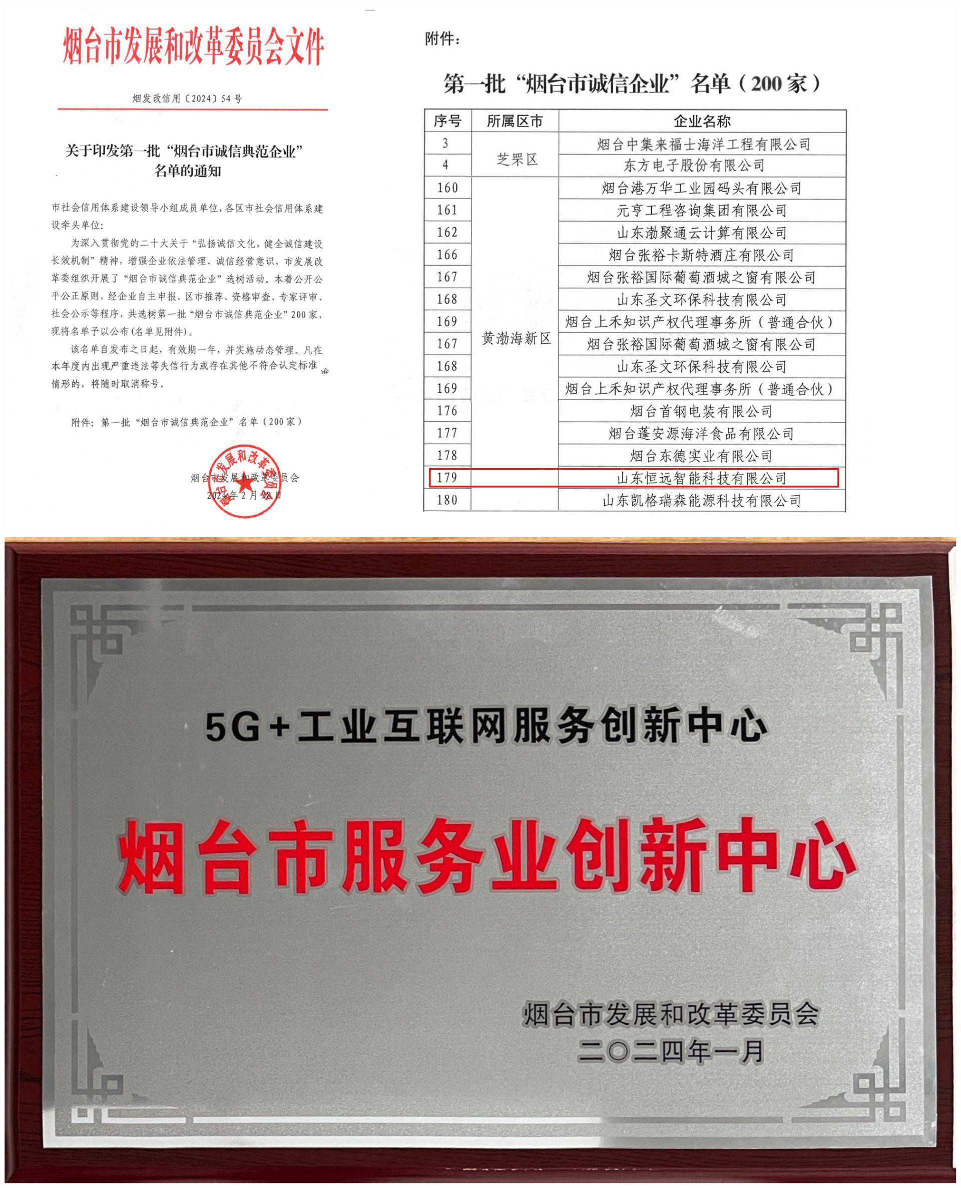 载誉前行启新程。日前,山东省发改委公示2024年度“省现代服务业重点项目库”名单,恒远科技“基于航天装备的智能工厂研发项目”成功入选。此外,凭借在工业智能化领域的创新实践,开年以来,恒远科技还成功入选烟台市发改委颁布的“首批烟台市诚信典范企业”,“5G+工业互联网服务创新中心”被评为“2023年度市级服务业创新中心”。