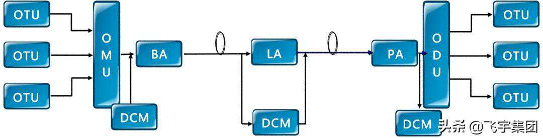 利用EDFA光放技术,配合DWDM,实现长途传输;同时,考虑色散问题,进行色散补偿。