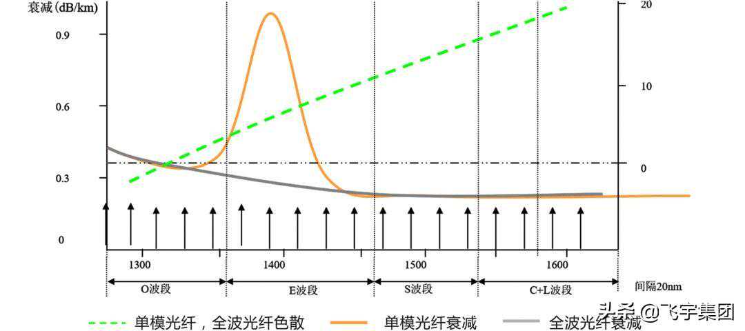 新推出的“全波”光纤消除了E波段1400nm附近的“水峰值”,18个波长的衰耗相对平滑,使得CWDM可以使用更多的波长传输业务。