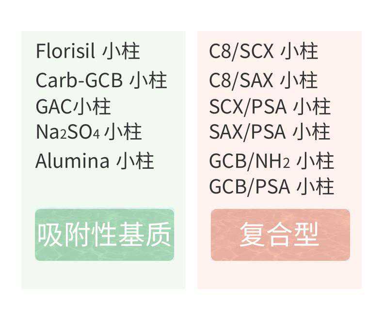 GAC(活性炭)表面包含六角环状结构,当在反相条件下使用的对于非极性和极性基质中的有机极性和非极性化合物都具有极强的亲和性,该炭相的无孔结构可以使其快速处理,吸附时不需要分析物扩散到固相微孔中。