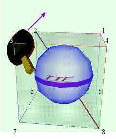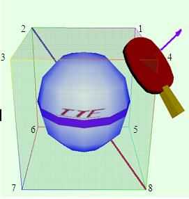 粗粗一看,这显然是一个右上旋球,因为球中部那个TTF图标连续不断地向右上角旋转。它的旋转轴是从左上角到右下角。