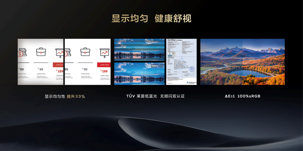 TCL办公智屏采用未来纸技术还获得莱茵的低蓝光和无屏闪认证,这有助于减少蓝光对眼部健康的危害,降低眼疲劳。