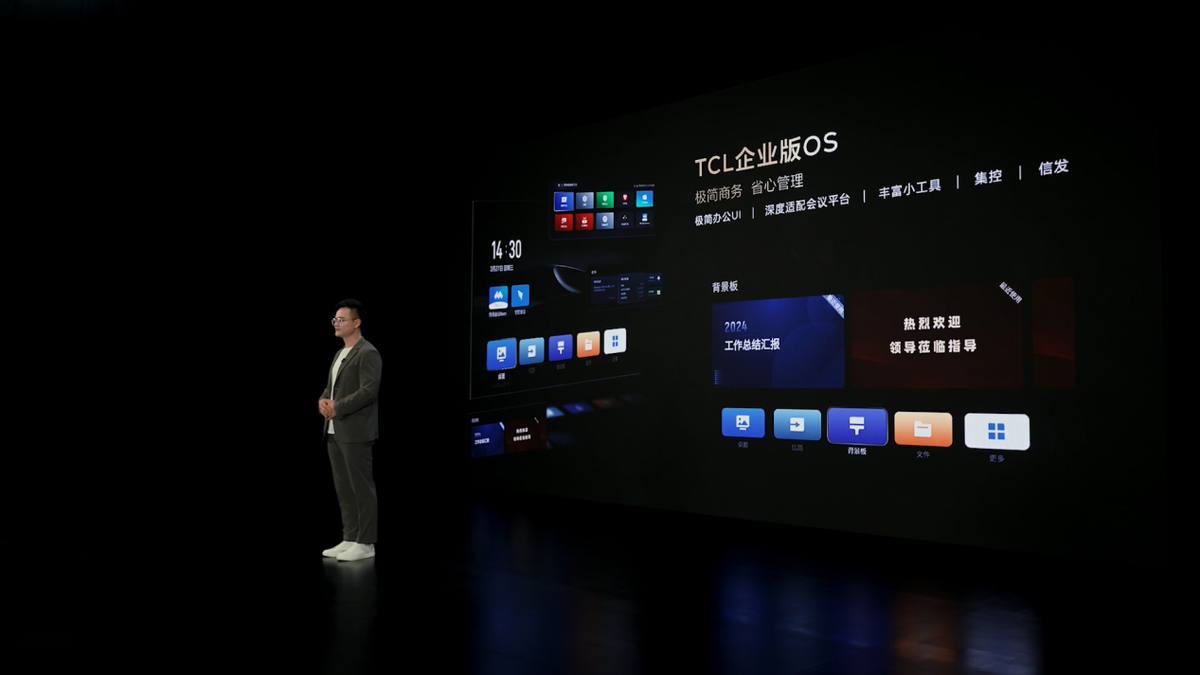 为了进一步优化办公体验,TCL办公智屏采用极简UI设计,实现应用直达、操作简便。系统纯净无广告干扰,用户体验更流畅。专属的TCL企业版OS可以让参会人员更加专注。